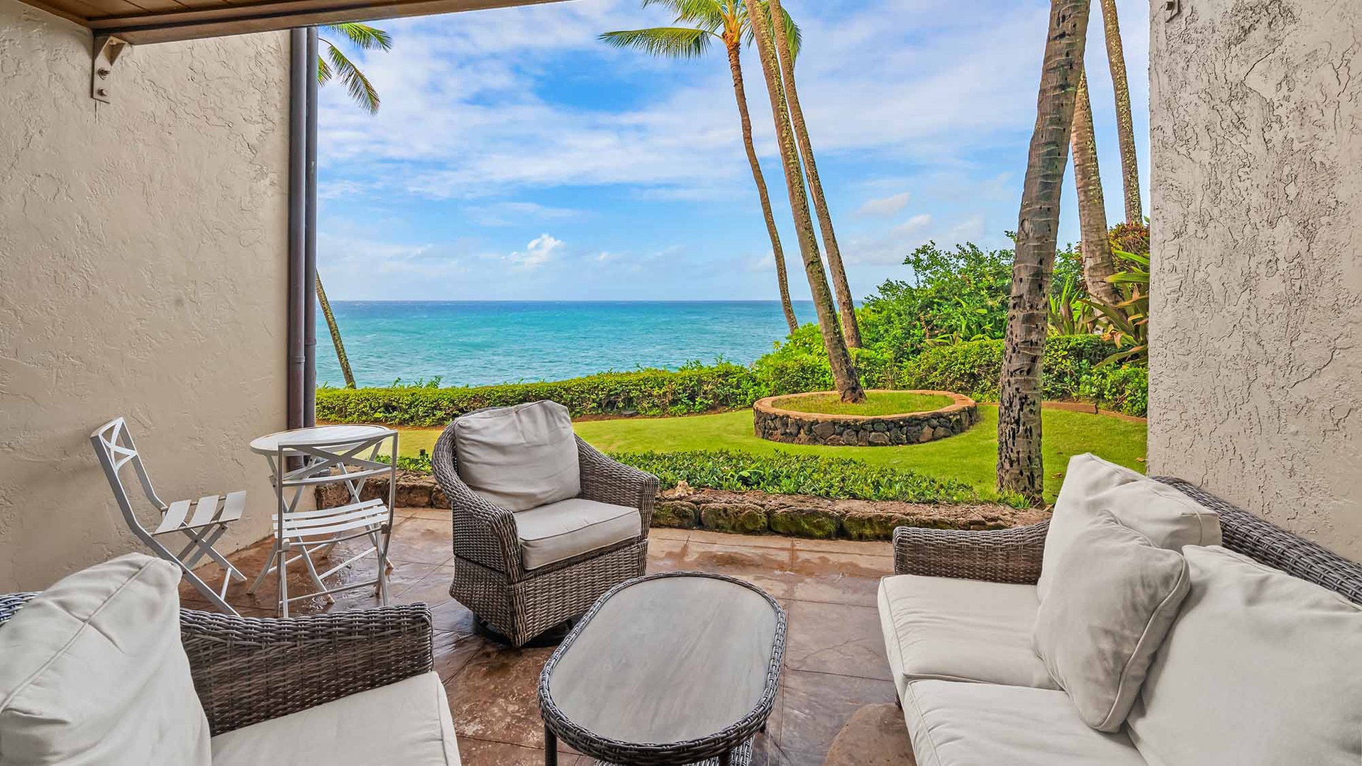 The condo was definitely dated but it was clean and had everything our family of four needed. The location is terrific, easy to drive anywhere on the island and a couple of blocks walk to Poipu Beach. The most wonderful feature is being right on the ocean, with a patio that opens to green grass and then a small cliff that drops to the sea. Such a beautiful and peaceful place for coffee in the morning, and such an amazing view of the sunset every night. The Parrish team was super responsive and helpful from making our reservation to check out.