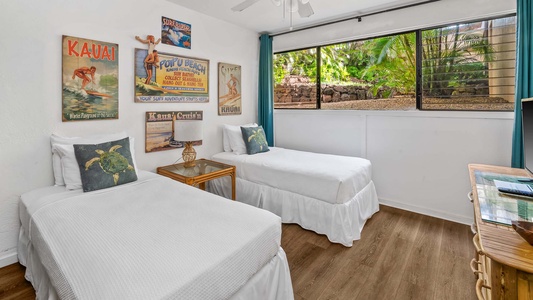 • Second Bedroom – two twin beds (convertible to king), AC, garden view, shared full bath with shower