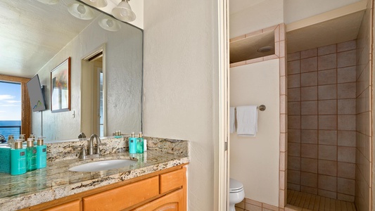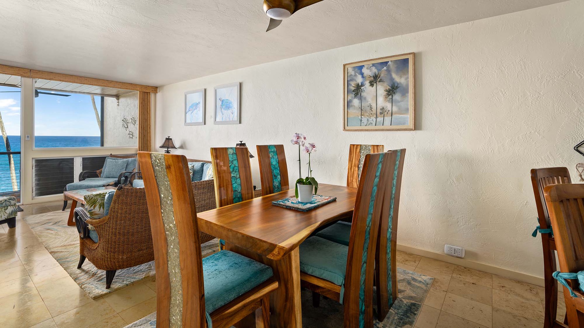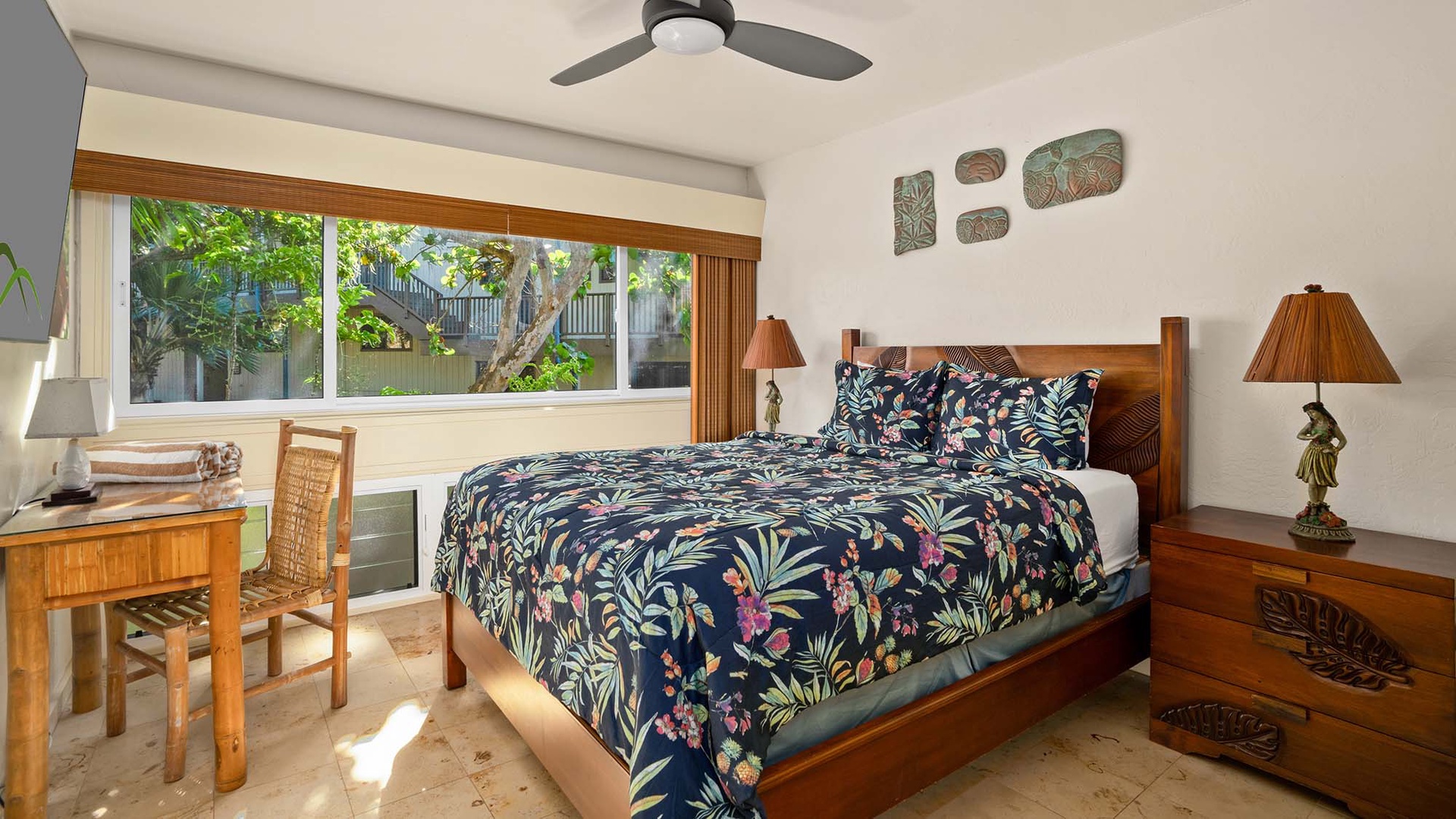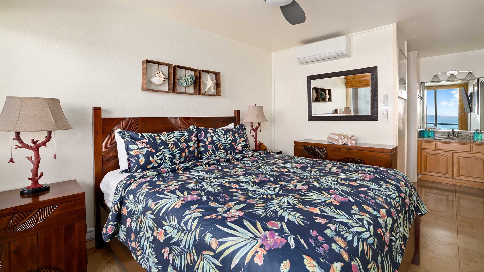 • Master Bedroom Suite – king bed, AC, ocean view, full bath with walk-in shower, oceanfront lanai, 60 inch TV streaming service only