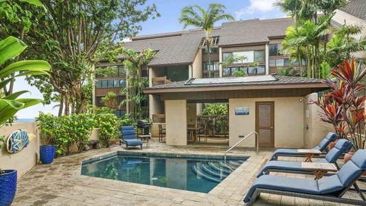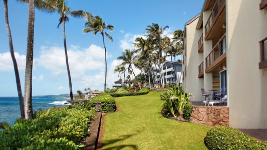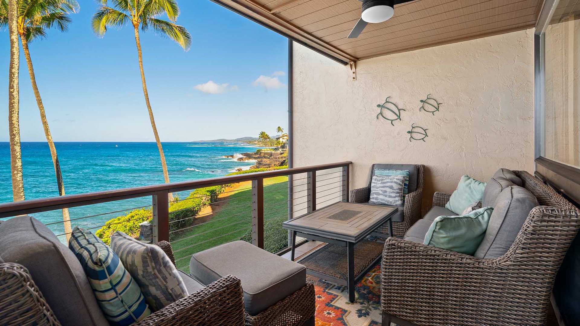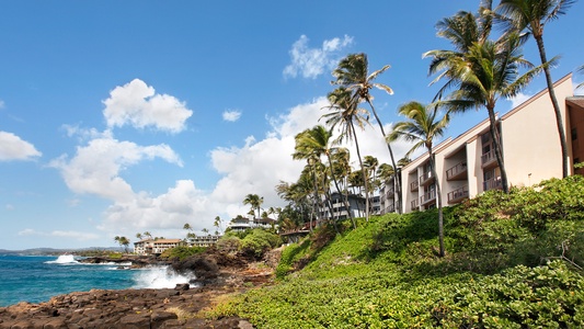 This unique oceanfront property is situated on the edge of a bluff providing spectacular views of the blue Pacific and the entire Poipu coastline from each unit. This small property has only 15 units, providing privacy and intimacy while being just a short walk to the world renowned Brennecke’s Beach and Poipu Beach. The sounds of the sea fill every room and each unit has full length lanais offering a great lookout for hours of watching turtles, dolphins, seasonal whales and brilliant sunsets.