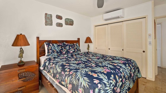• Second Bedroom – queen bed, AC, garden view, shared full bath tub with shower, 60 inch TV streaming service only