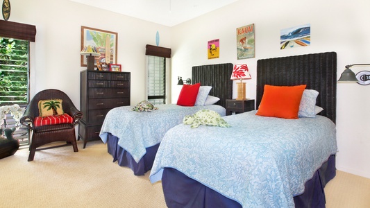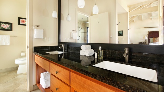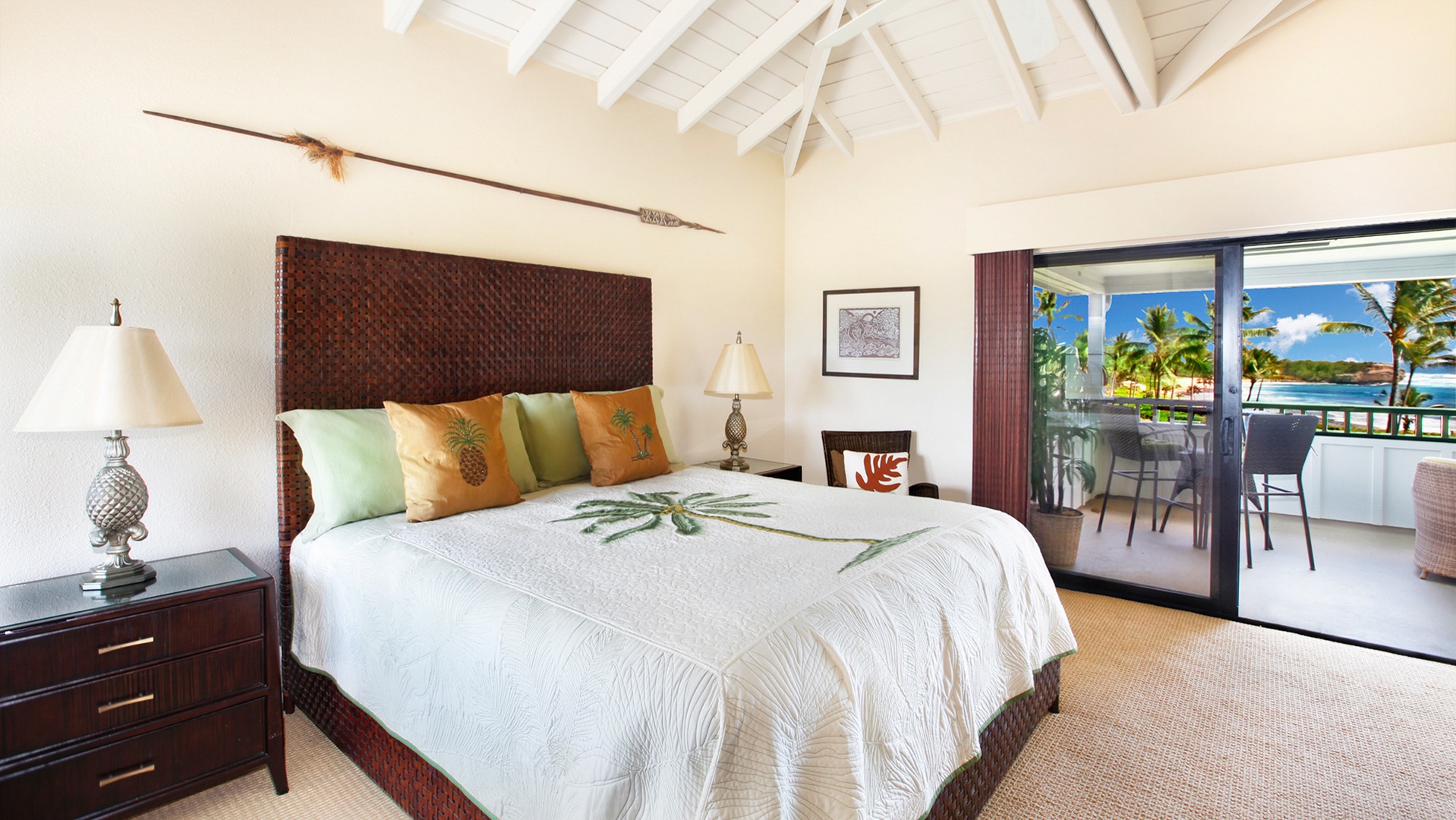 • Master Suite – Upper level, partial ocean view, king bed, full bath with walk-in shower, private lanai