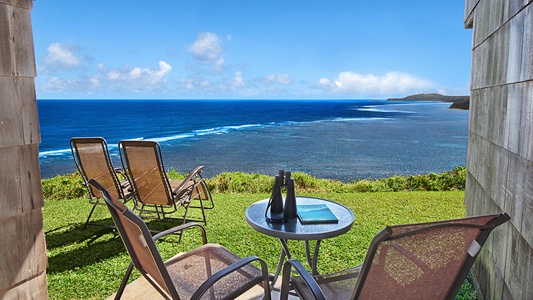 Love the patio. Great unobstructed view of ocean and coastline. Sunrises every morning. albatross zooming by. sound of waves lulling us to sleep every night. The solitude. would suggest getting a bath mat. Tub kind of slippery getting in and out of the shower.