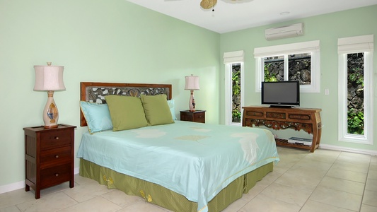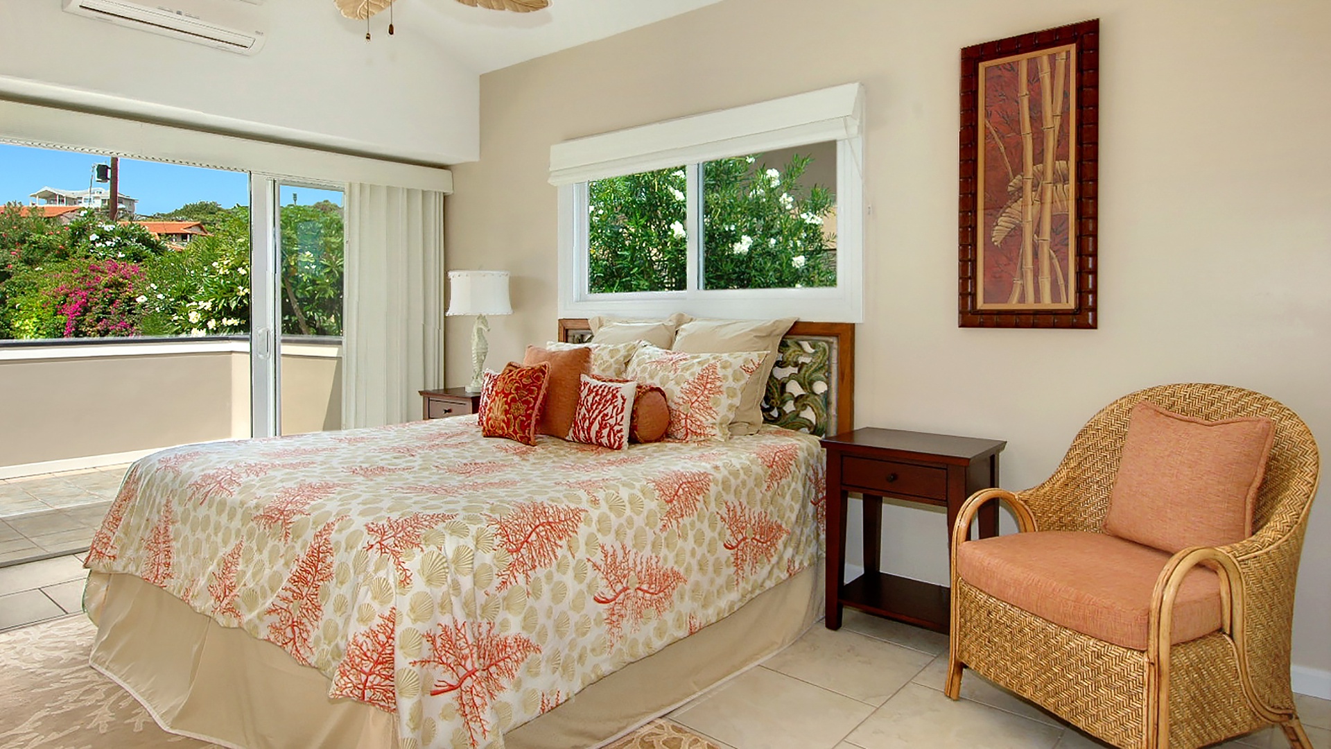 • Master Bedroom Suite – king bed, second floor, full bath with tub and separate walk-in shower, TV/DVD, dramatic sliding doors to oceanfront covered lanai, air conditioning