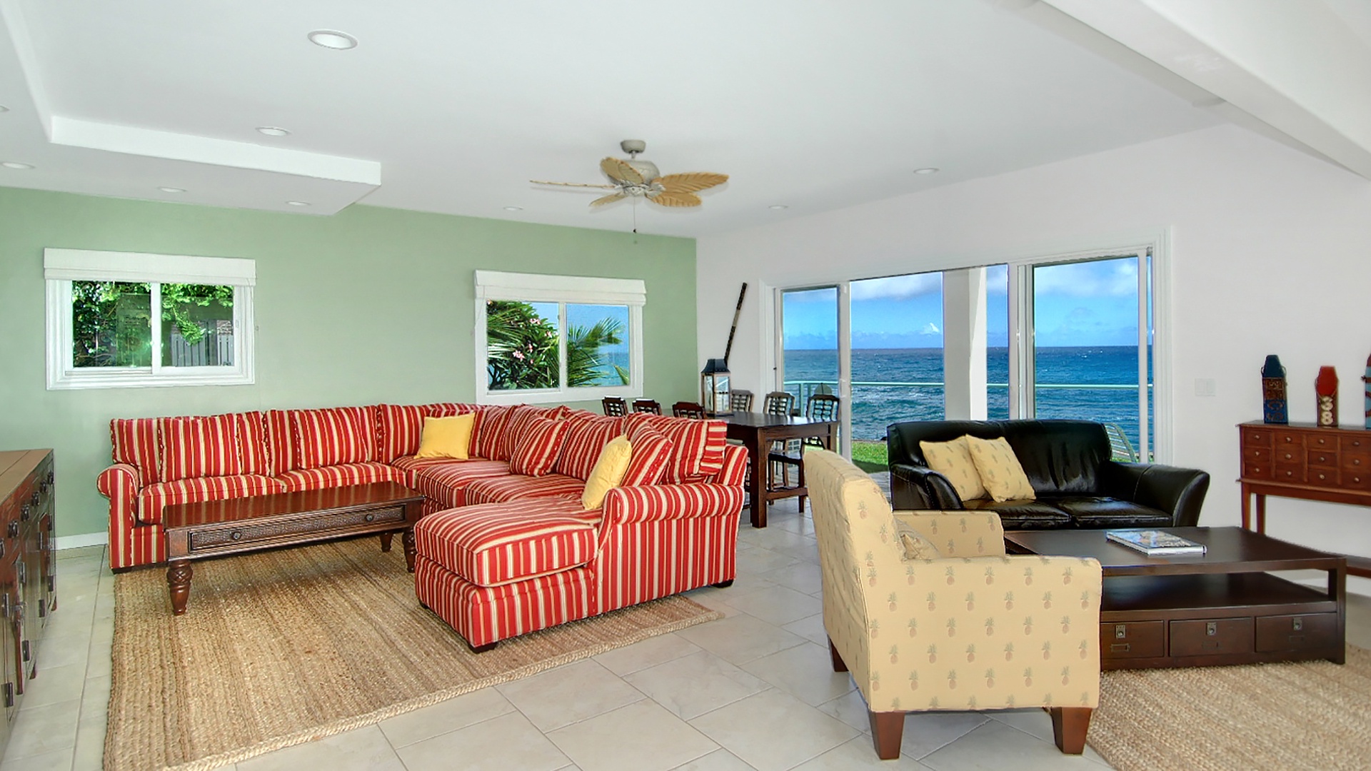 Located on the dramatic Poipu Beach coastline, this distinctive estate among our Kauai oceanfront rentals offers its guests breathtaking views, unique architecture and a spacious layout. The five bedroom residence opens up to the ocean and is designed to fully take advantage of magnificent vistas. From the dramatic oceanfront swimming pool and spa, you’ll relish picturesque Kauai sunsets, crashing waves, seasonal migrating whales, dolphins, and turtles all right out front of your island vacation home.