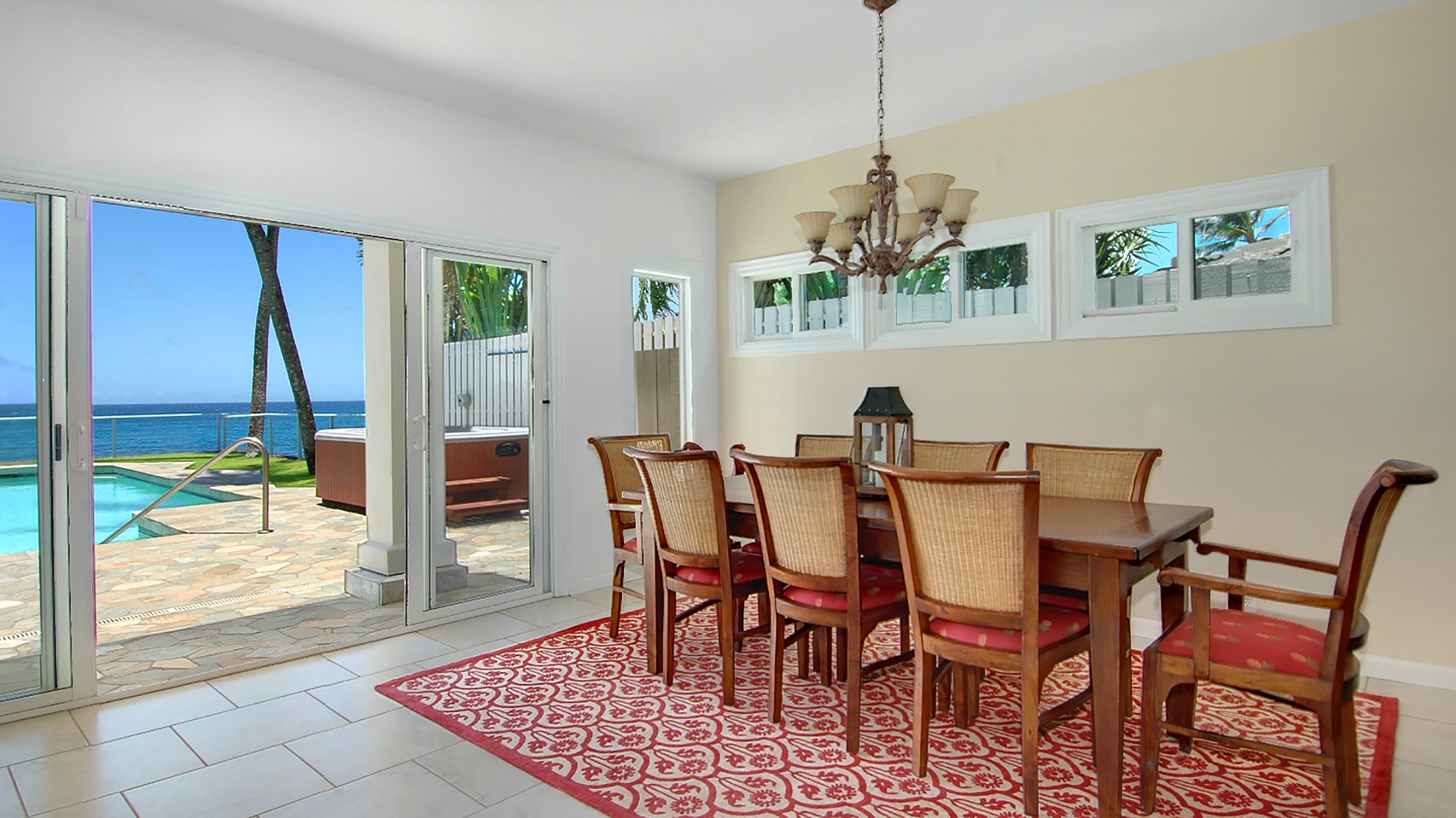 We loved the beautiful oceanfront location with proximity to activities at Poipu Beach and other spots on the south shore. We loved the pool and hot tub. The house size was perfect for our family of eleven. However, we were disappointed with some of the appliances including the dishwasher which didn’t get dishes very clean, the stove top with one burner and the oven which didn’t work, and freezer in the kitchen which only opened partially. (Luckily there was another in the garage.)The light switches were confusing. We had to unscrew 2 lightbulbs to get them to stop flashing in the master bedroom. The garage was convenient as was the laundry room. The TVs were all working properly, however there was no explanation for their usage.