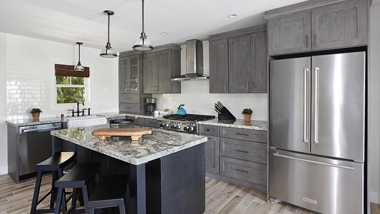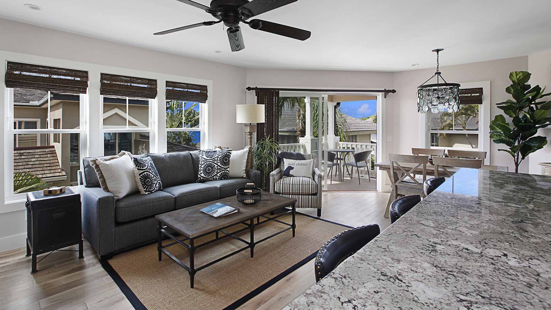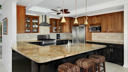 • Stainless steel appliance in ocean view kitchen, access to pool/spa, outdoor dining area