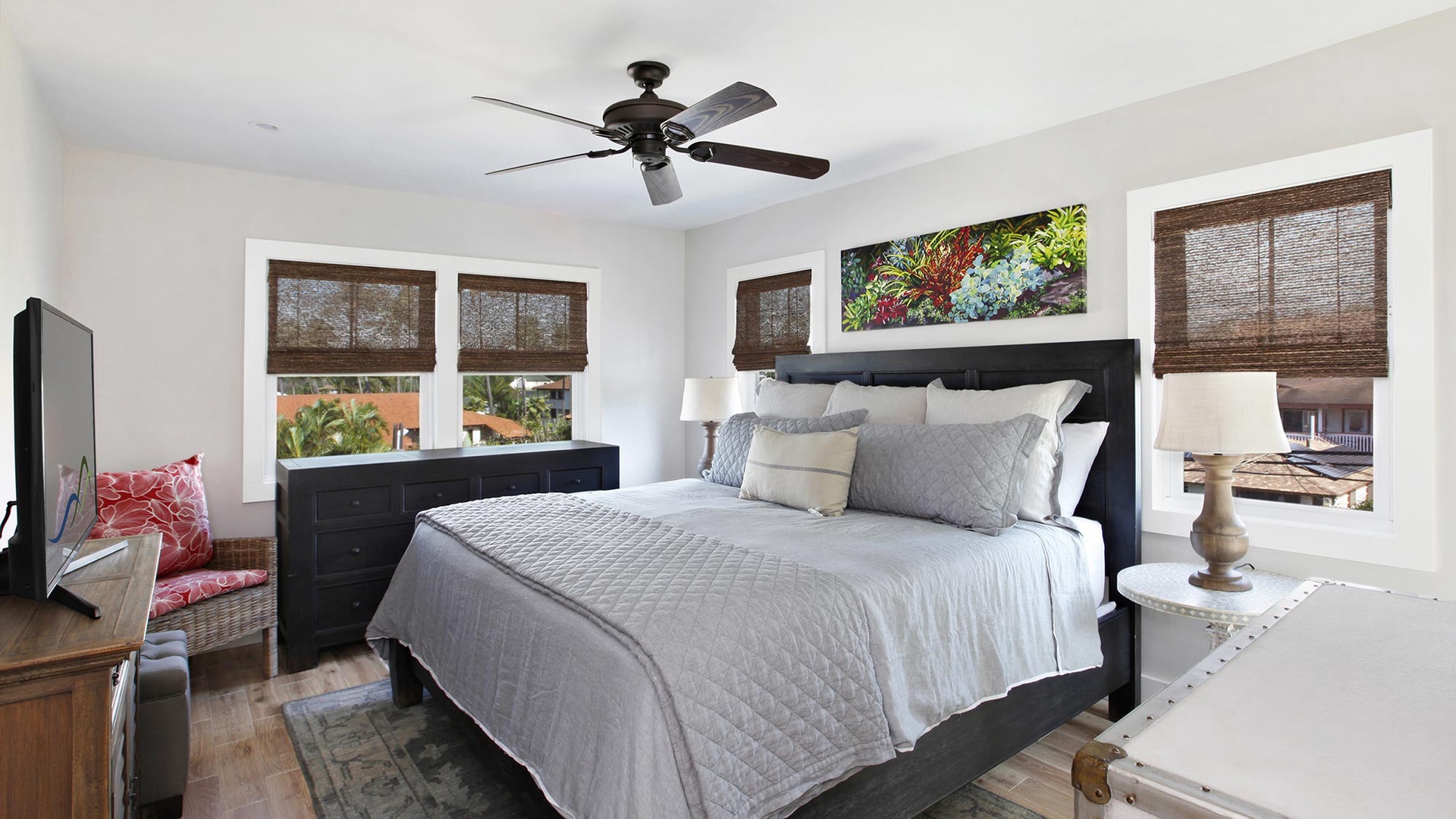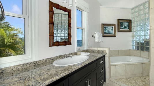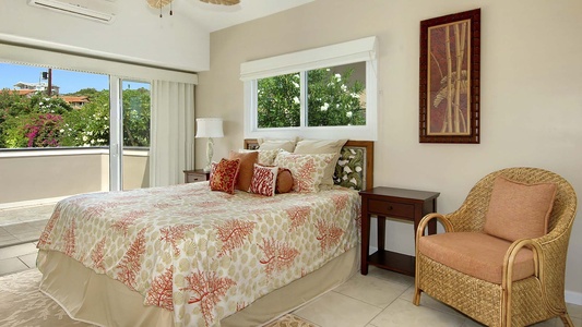 • Master Bedroom Suite – king bed, upper level, TV, AC, ocean view shared lanai, private bath with walk-in shower and large walk-in closet