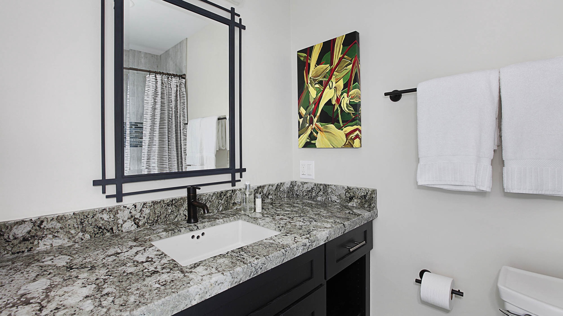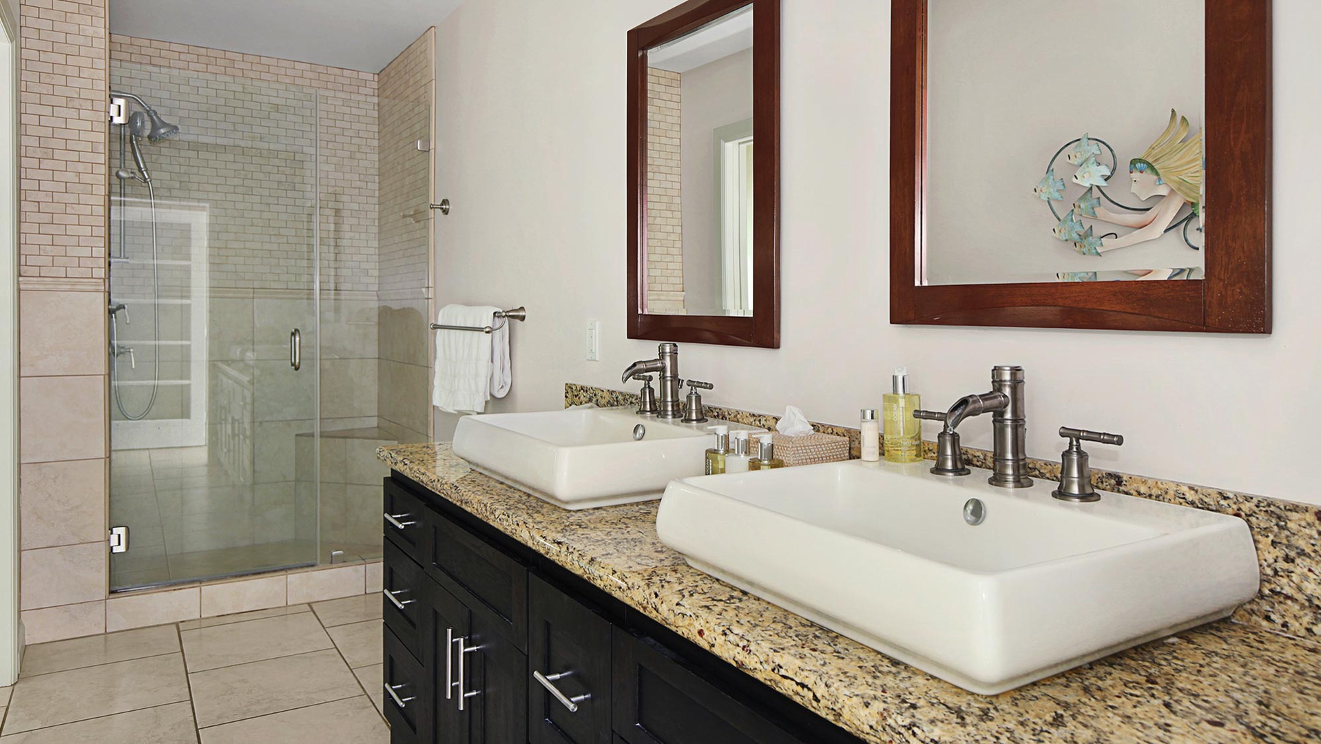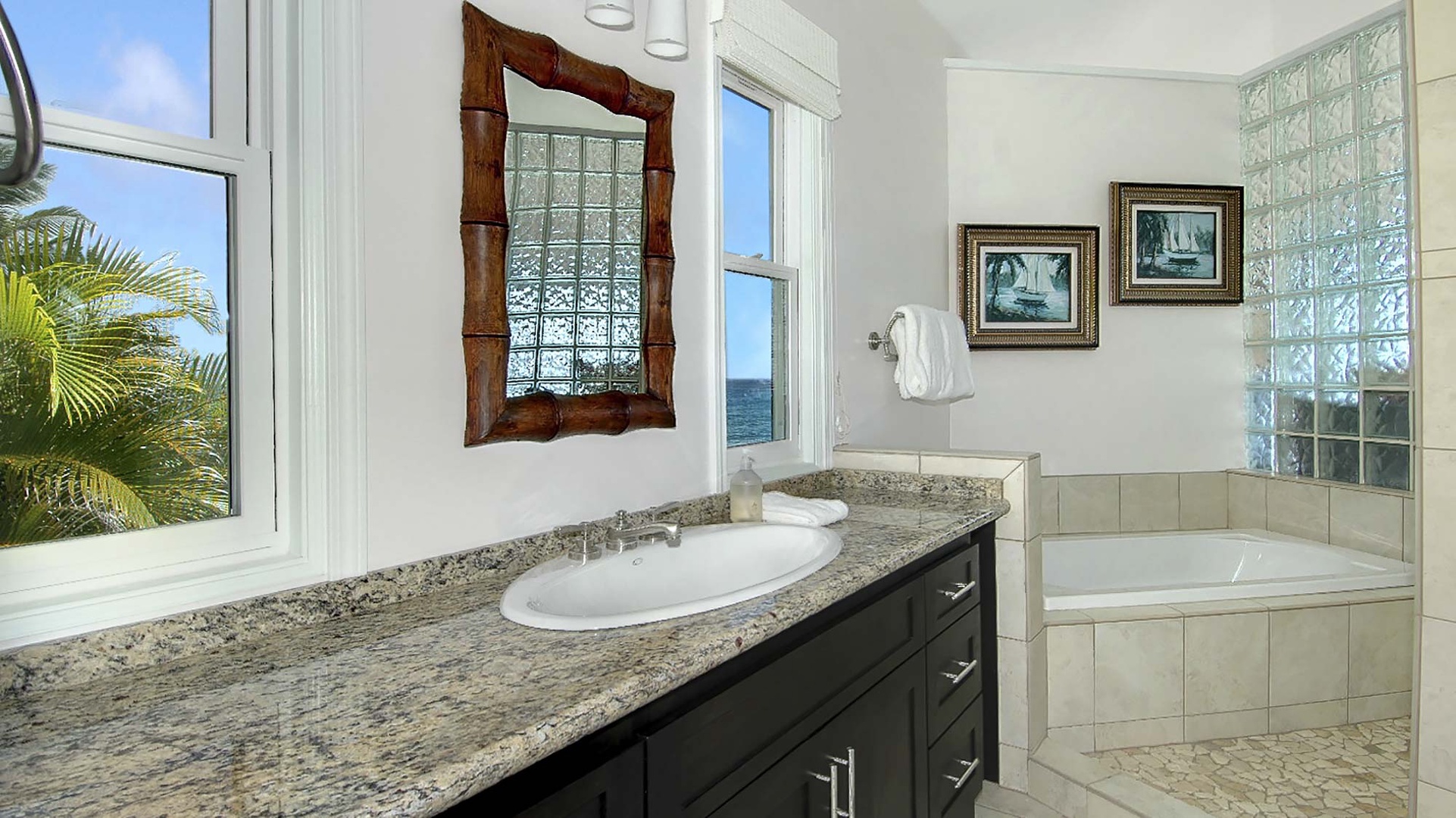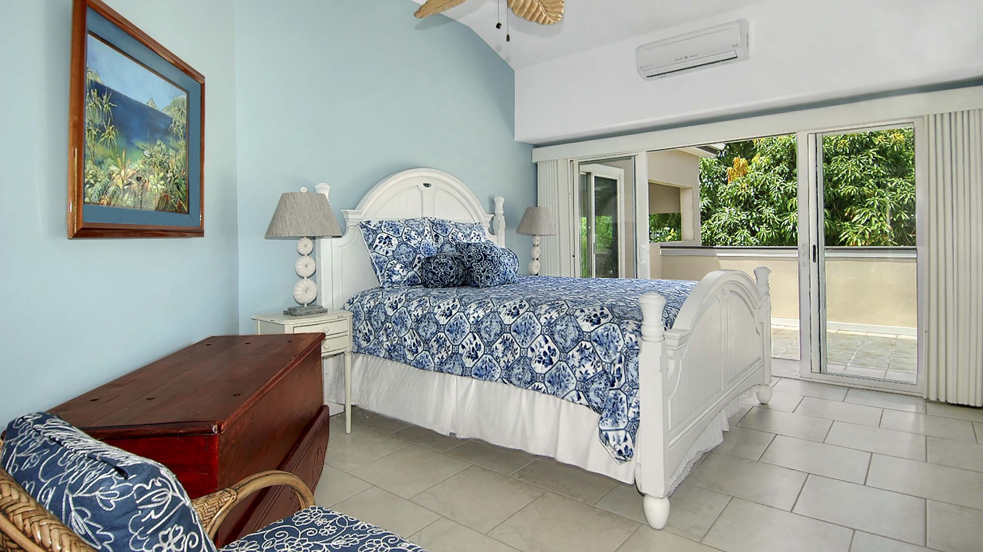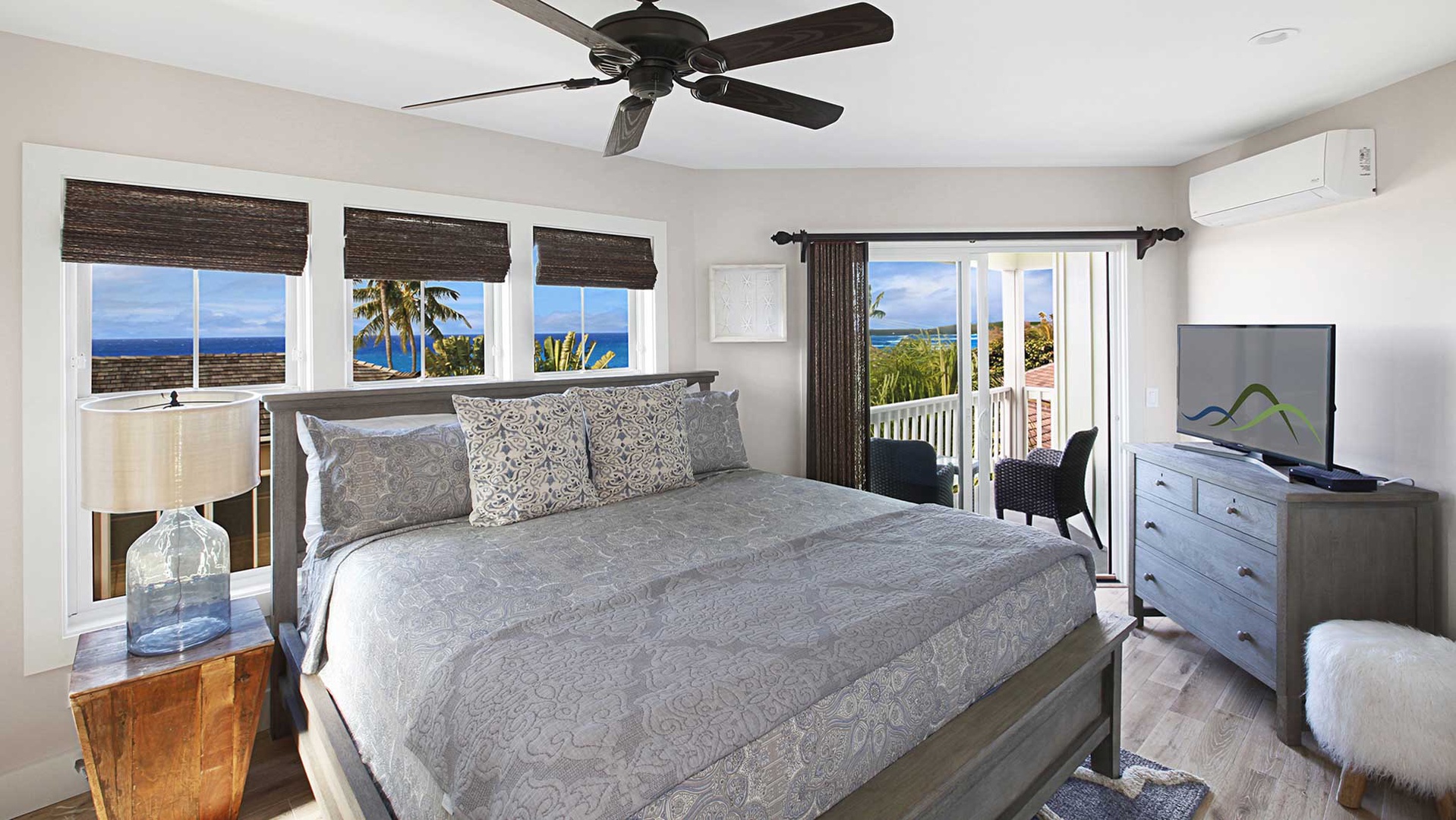 • Master Bedroom Suite – King bed, upper level, TV, AC, shared ocean view lanai, private bath with walk-in shower