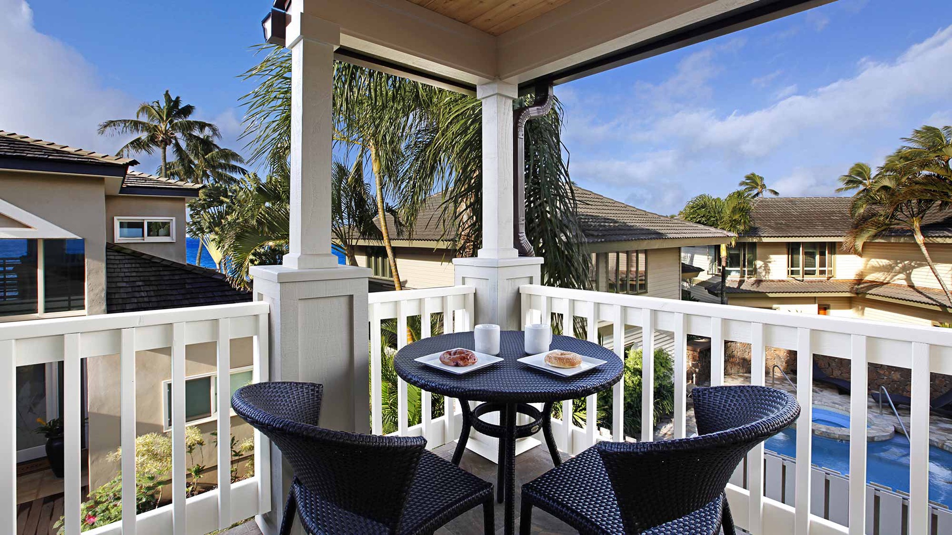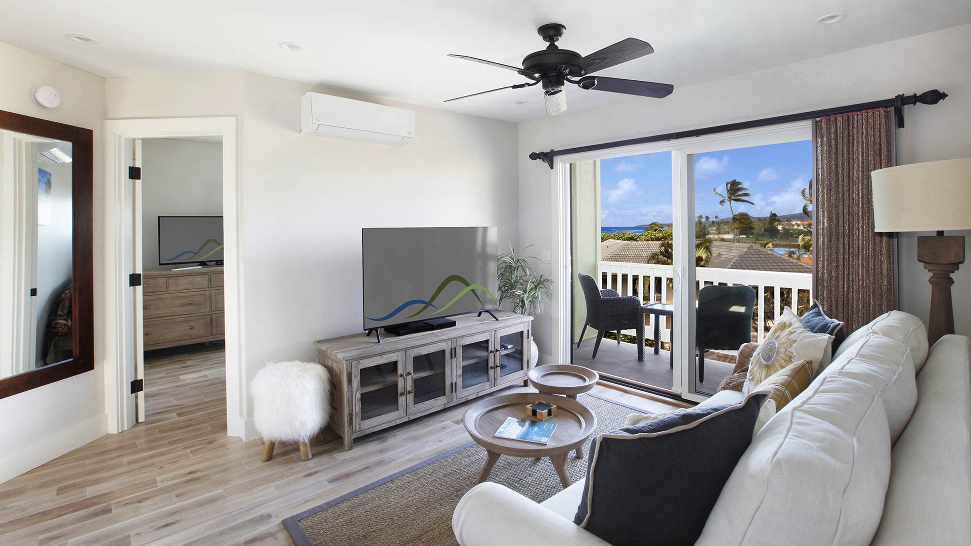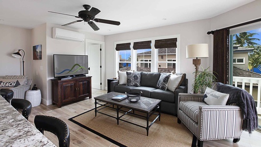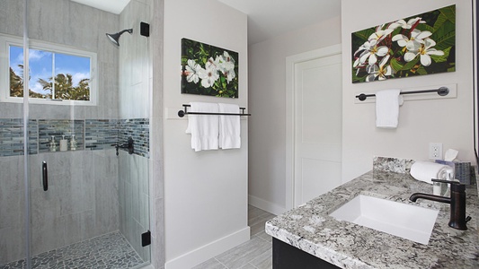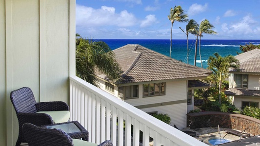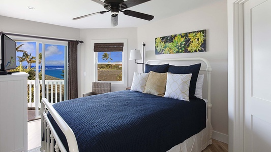 • Second Bedroom Suite – King bed, upper level, TV, AC, ocean view lanai, private bath with walk-in shower