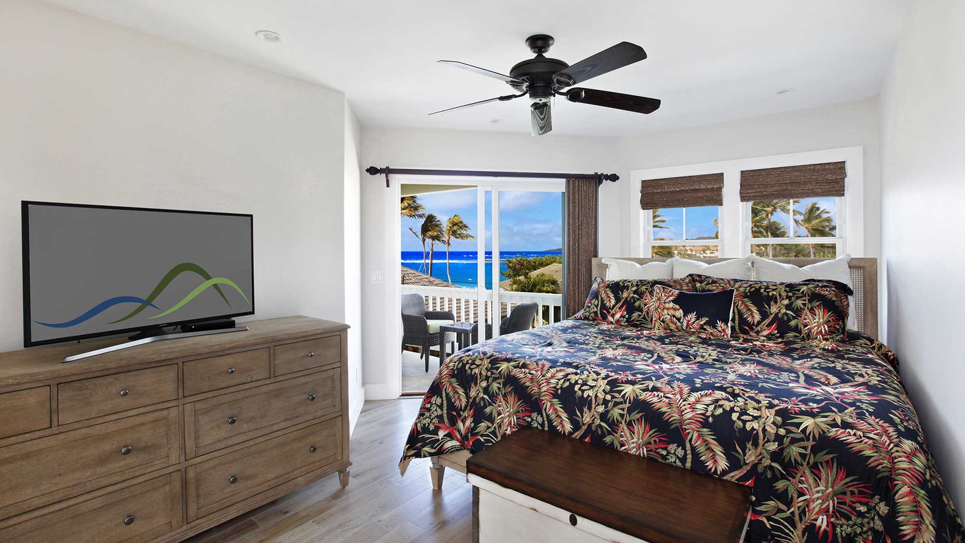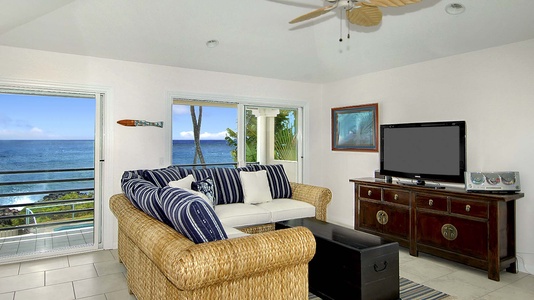 • Master Bedroom Suite – king bed, second floor, TV/DVD, dramatic sliding doors to oceanfront covered lanai, air conditioning