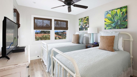 • Third Bedroom – 2 twin beds bed, upper level, TV, AC, shared ocean view lanai, shared bath with walk-in shower