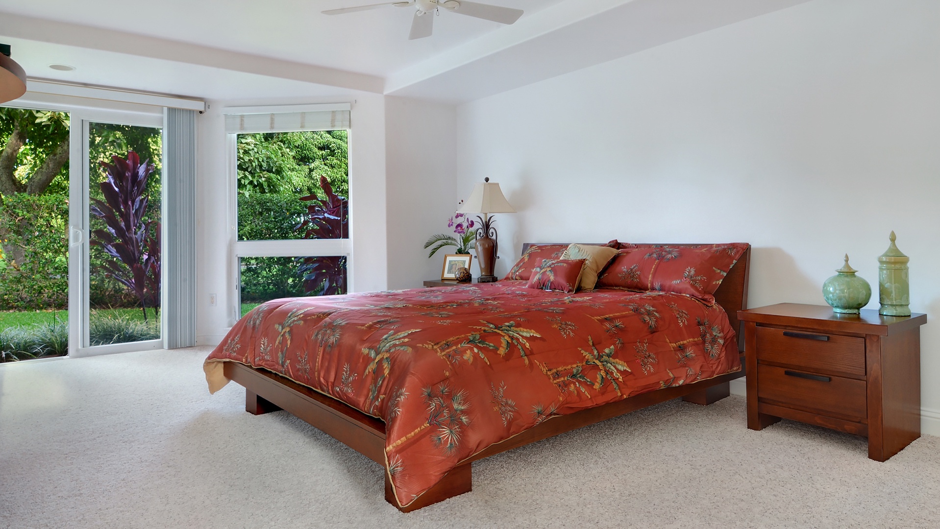 • Master Bedroom Suite – lower level, king bed, Apple TV, full bath with jetted tub and shower, access to private lanai