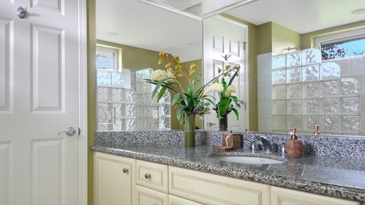 • Second Master Bedroom Suite – lower level, queen bed, Apple TV, full bath walk-in shower, access to private lanai