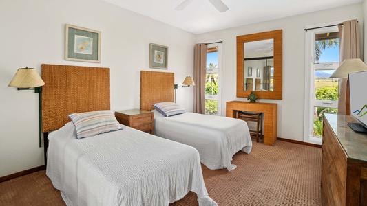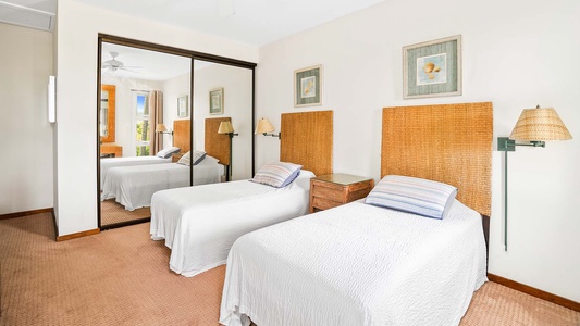 • Second Master Suite – second level, two twins, (convertible to king), TV, garden view, full bath with walk-in shower
